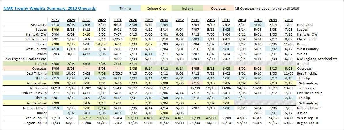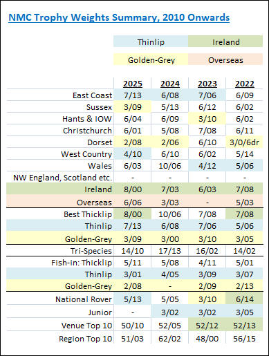 Trophy Weights Summary: 2010 Onwards